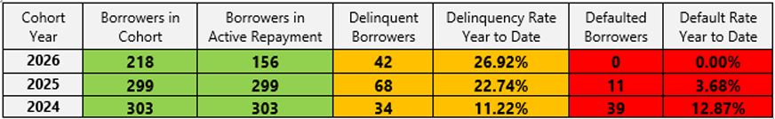A zero Cohort Default Rate reflects the repayment pause — not current borrower behavior.